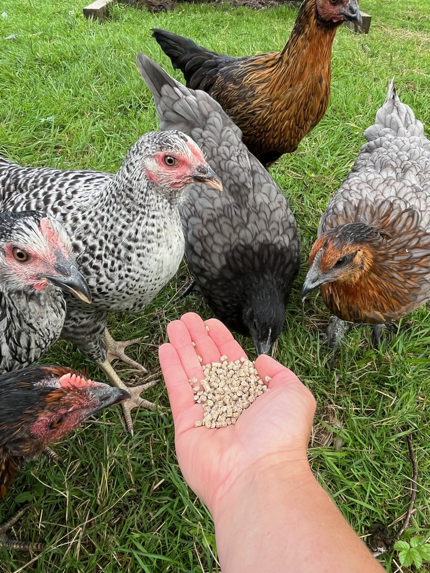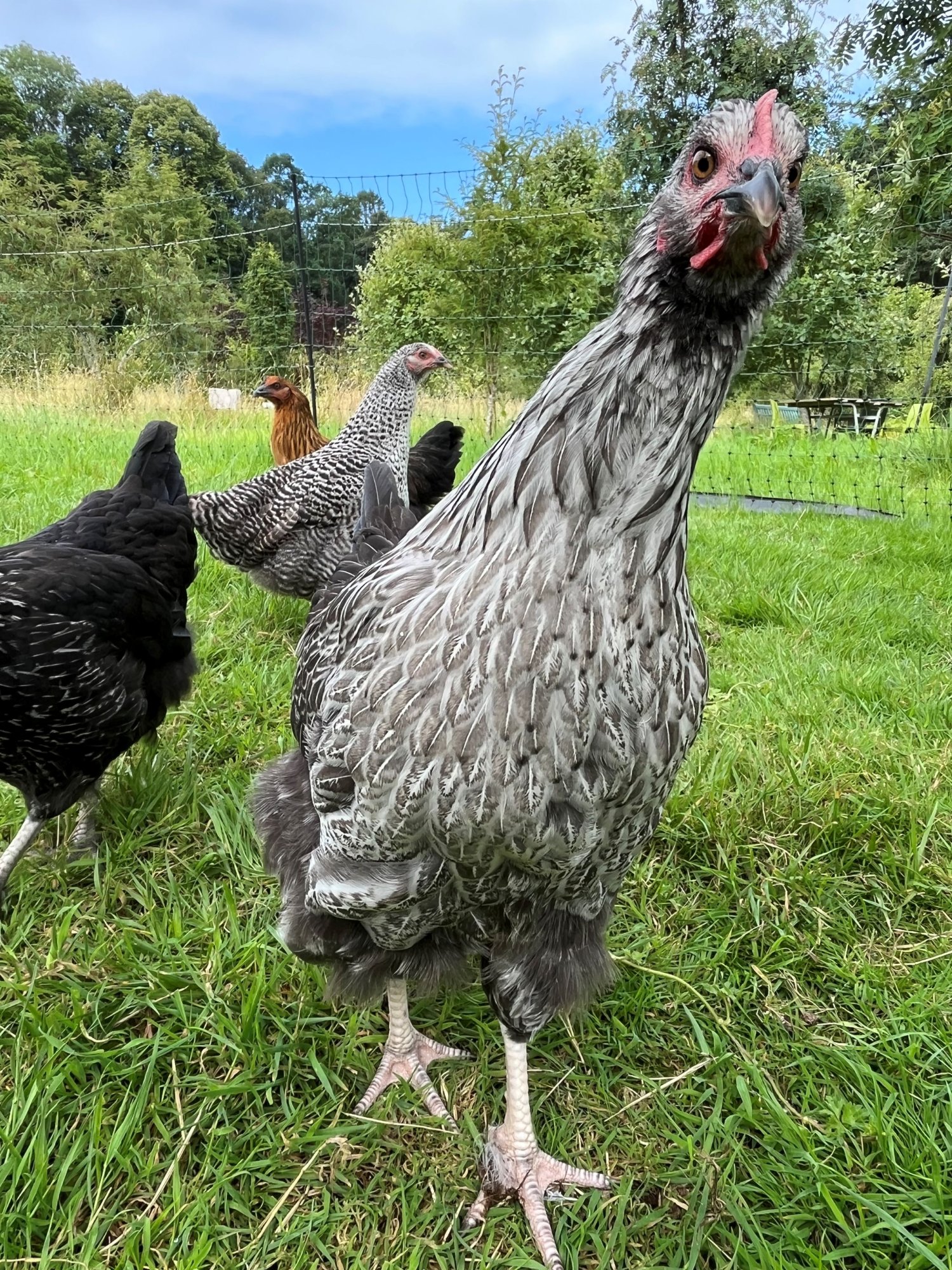 We have some Rhode Rock, Speckledy, Bluebell and Silver Sussex which will hopefully give us a good mix of strong layers and interesting eggs. They should start to lay between 18 and 22 weeks so we have a bit of time to get them used to us and being handled before we put them to work. So far they are settling in well and are behaving themselves. They are very cute with their dinosaur-like gait and baby noises and our students are excited to get to know them.